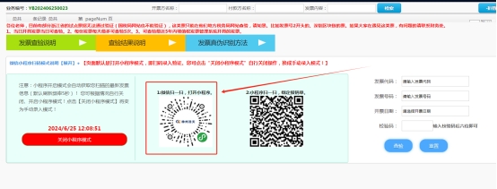 第三步:用小程序扫描发票左上角二维码,发票信息会自动显现,点击【查验】按钮;如果已经录过,会有相应提示,注意发票不允许重复报销使用!保存成功后,可继续小程序扫描发票二维码识别新发票信息!