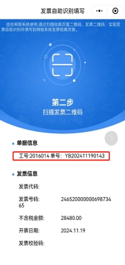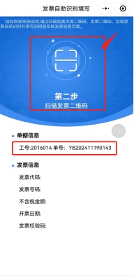 第二步:小程序扫一扫,识别发票二维码信息,系统会自动填充页面的发票信息;